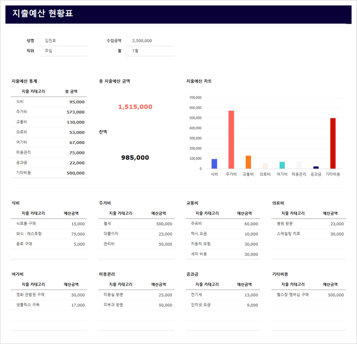 월간 지출예산 현황표