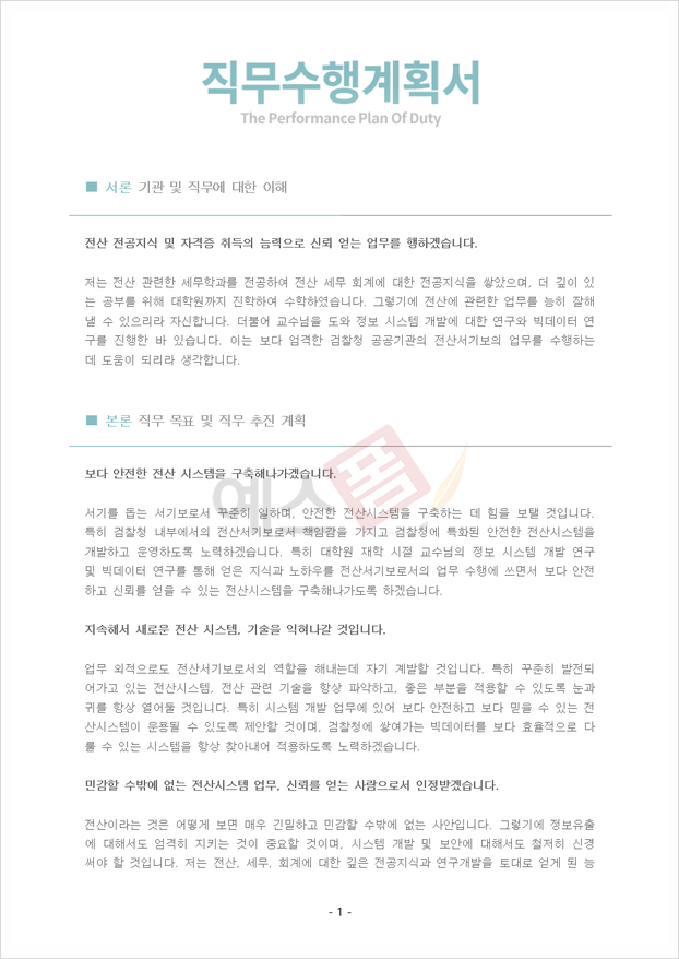 직무수행계획서 샘플(양식.서식) 검색자료