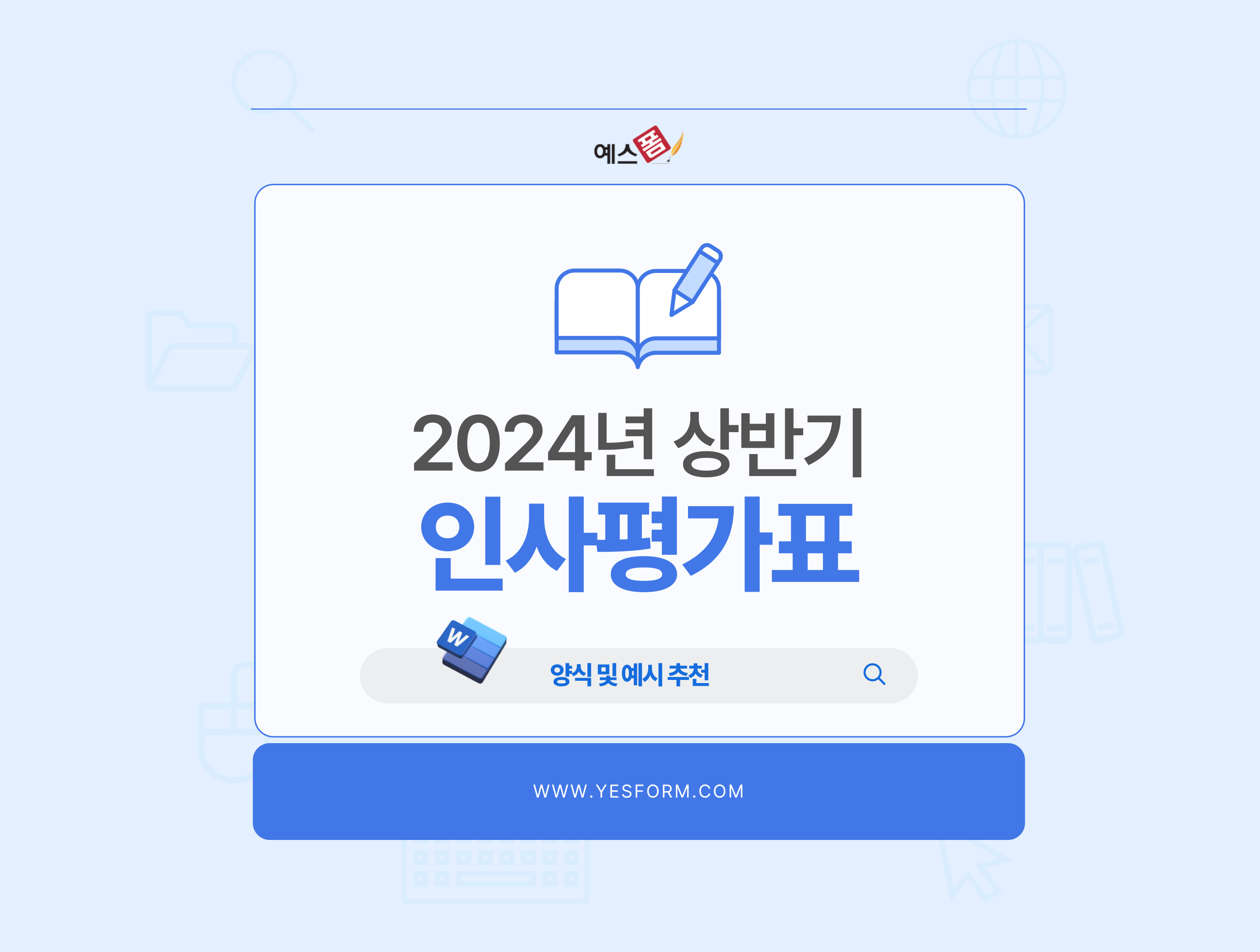 오늘은 예스폼에서 2024년 상반기 인사평가표, 인사고과표 양식 및 예시 추천에 대해서 알아보도록 하겠습니다.