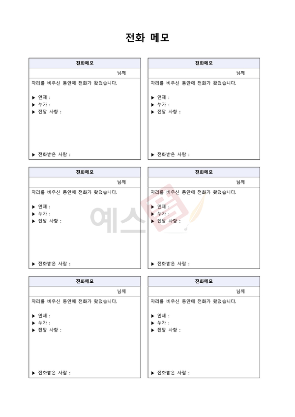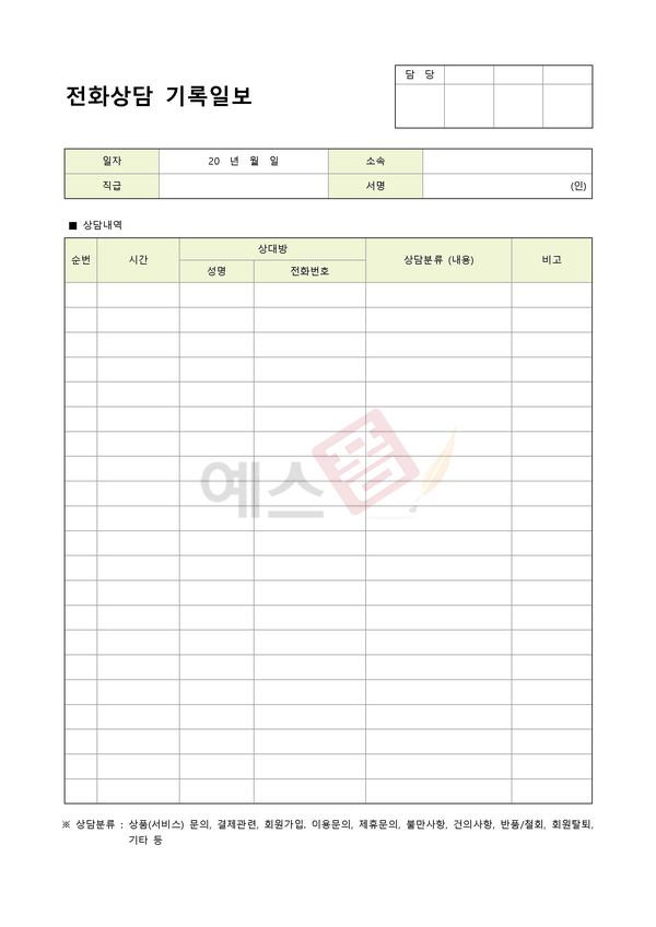 | 전화 상담일지 | 사내 전화번호 목록부 | 전화상담 기록일지 |