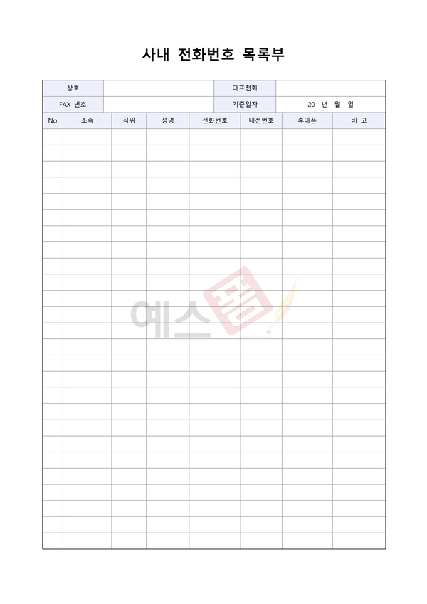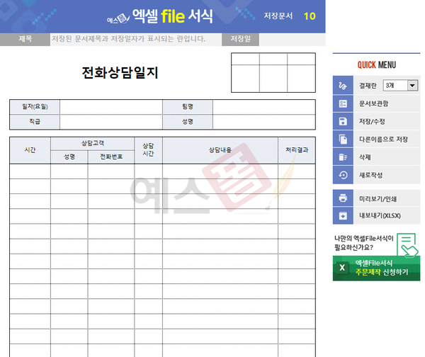 | 전화 상담일지 | 사내 전화번호 목록부 | 전화상담 기록일지 |