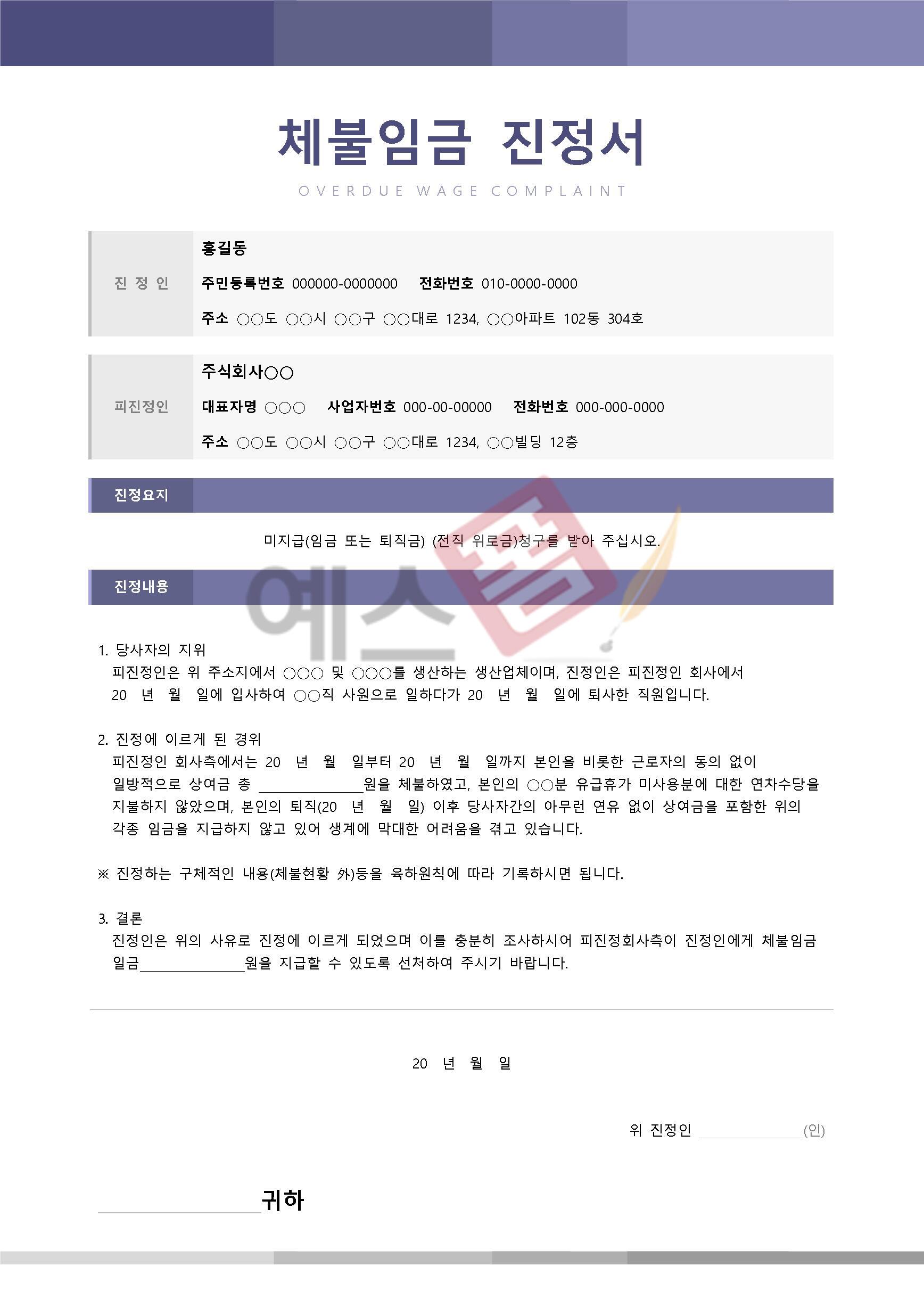 진정서 양식 모음