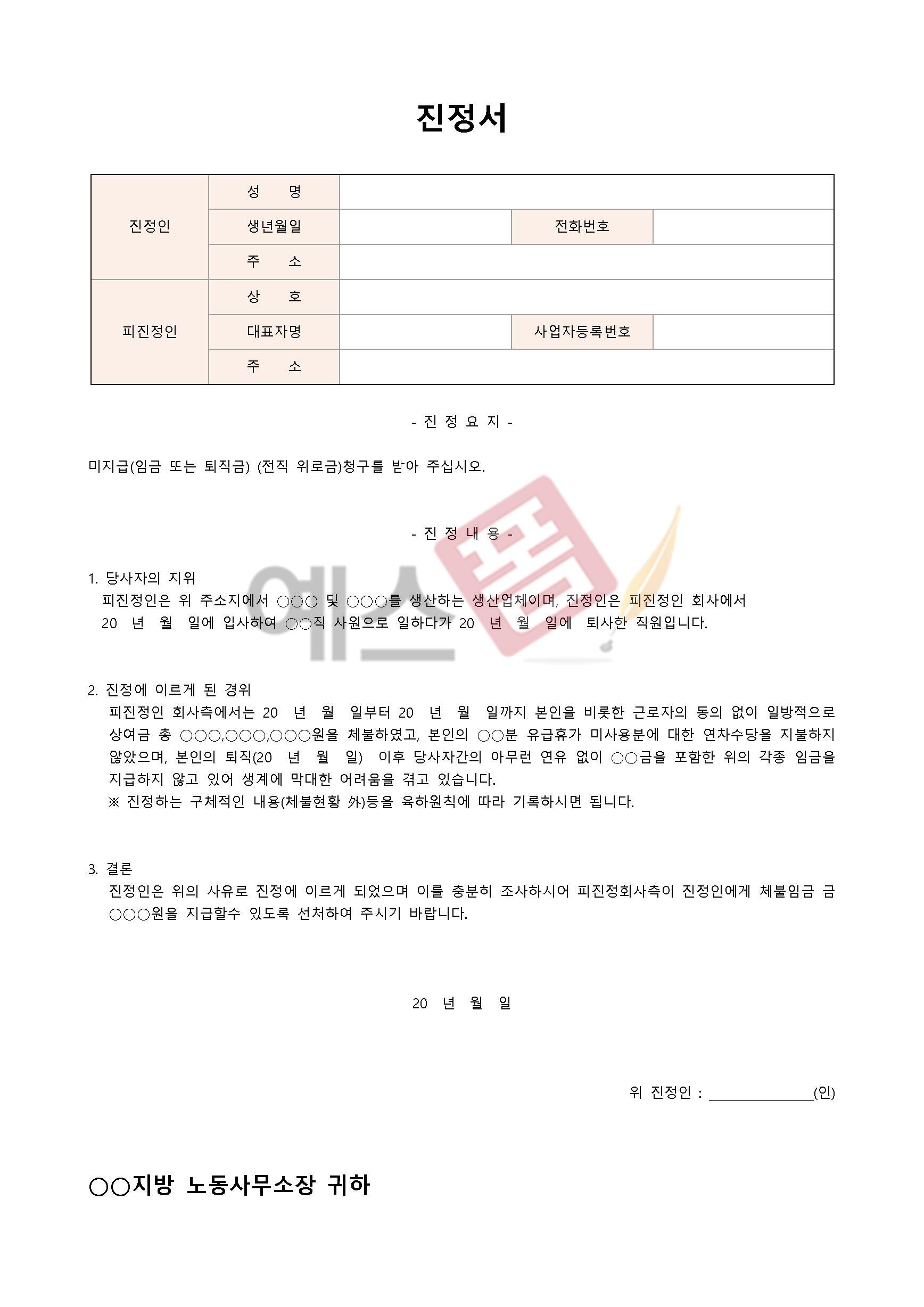 ▶진정서: 진정서는 일반적으로 문서 형식으로 작성됩니다. 공공기관이나 기업에 제출되며, 특정한 양식이나 절차를 따르지 않을 수 있습니다. 진정서는 개인의 불만이나 고충을 구체적으로 기술하고, 그에 대한 해결 방안을 제시해야 한다.