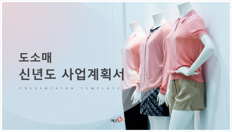 도소매업 신년도 사업계획서 PPT 템플릿 양식 (의류 전문점)입니다. 창업계획서 양식으로 활용하기 좋은 여성의류 매장의 이미지가 다수 포함되어 있습니다.