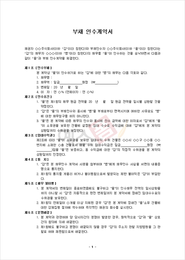 (채무승계)채무인수 계약서 기본서식