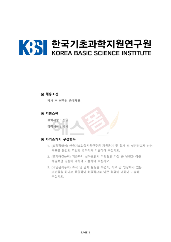 기업별 공채 자기소개서 (한국기초과학지원연구원) |