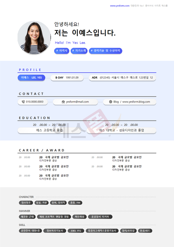 예스폼 이력서. 자기소개서 - 취업문서 전문제공