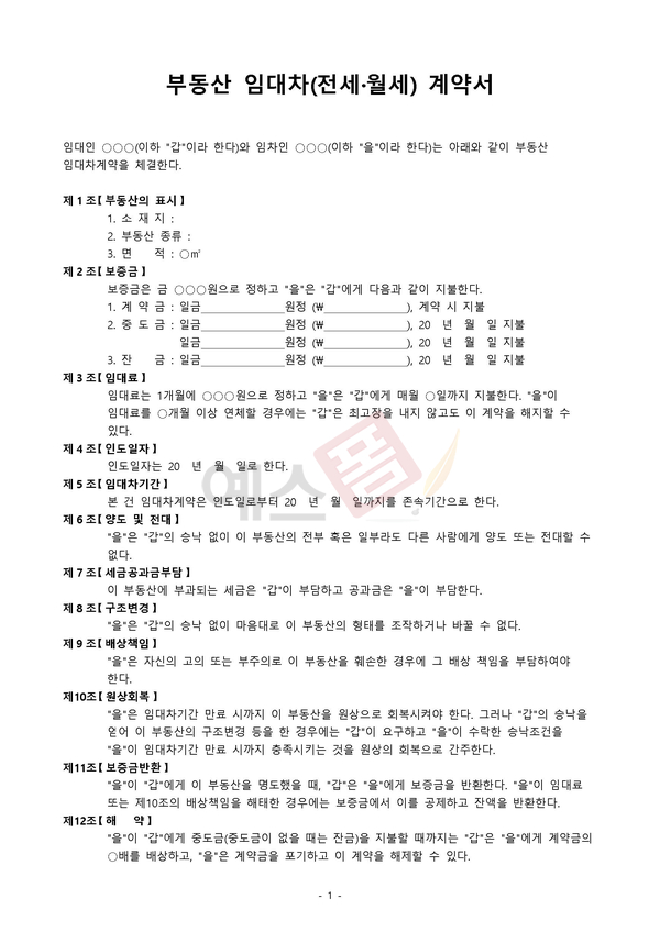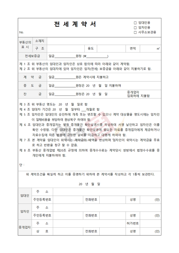 전세계약서 양식