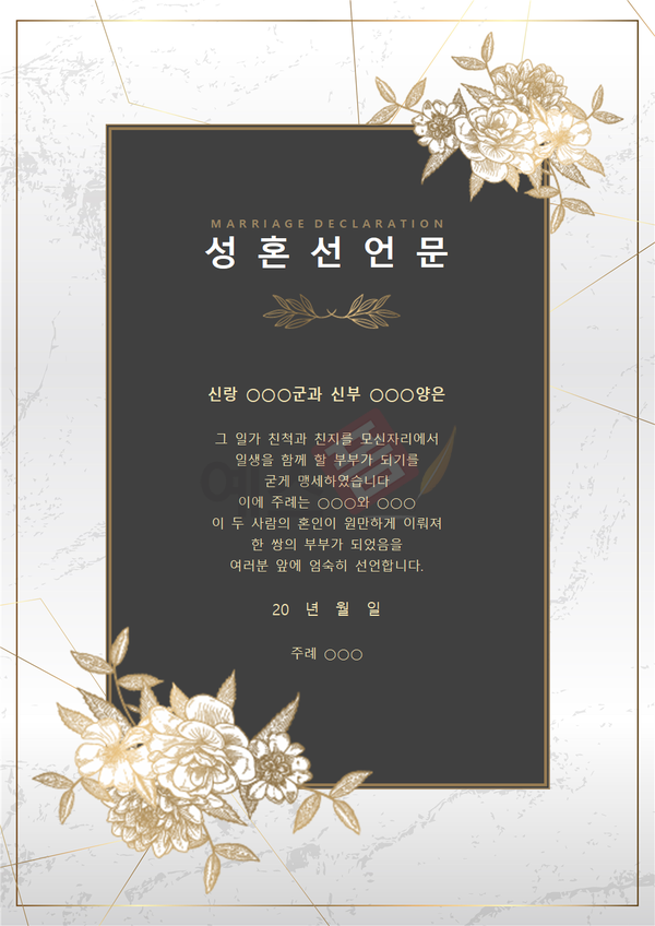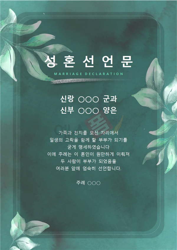 | 성혼선언문 (부부) | 성혼선언문 (부케꽃) | 성혼선언문 (초록무늬) |