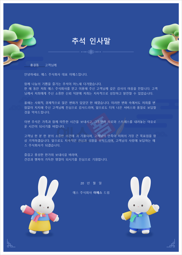오늘은 추석을 대비해 예스폼에 새로 업데이트된 추석 인사문, 추석 명절 인사말, 연휴 업무 안내문 양식 및 예문을 소개드릴 예정인데요. 다가오는 추석 미리 대비하고 편안한 명절 휴가 보내시기를 바랍니다!