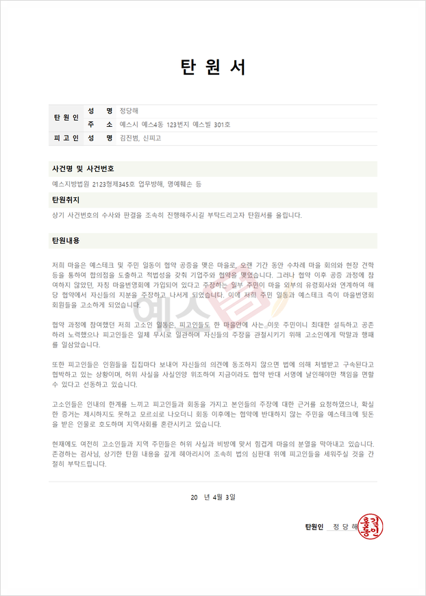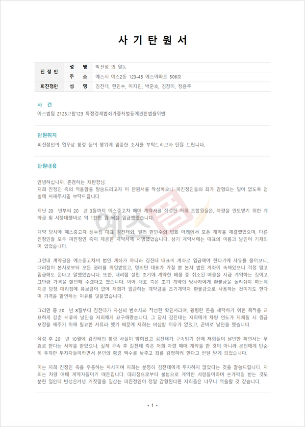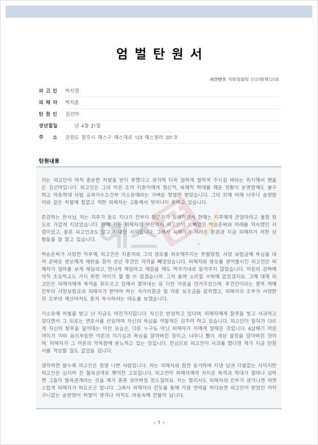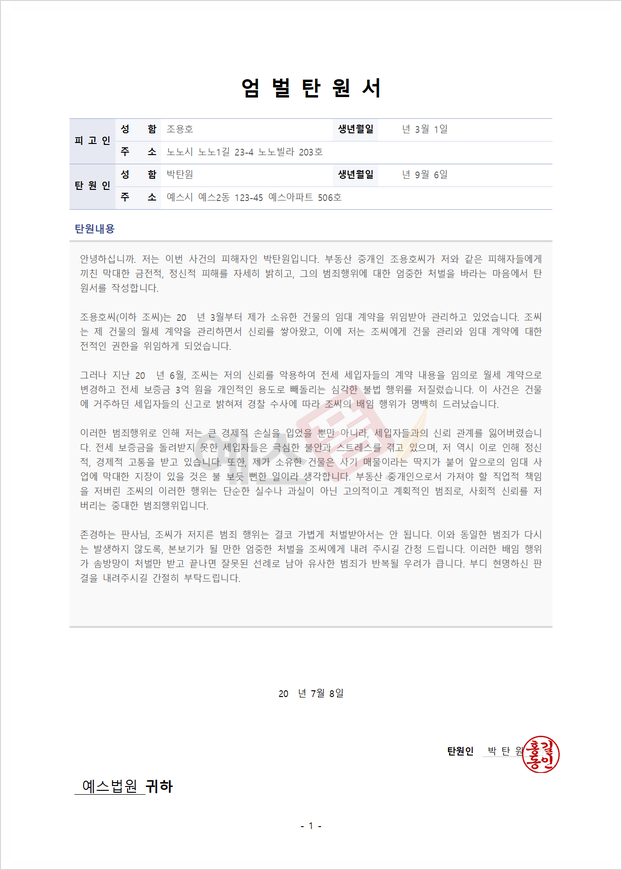 ▼▼ 더 많은 엄벌 탄원서 양식 보러 가기 ▼▼