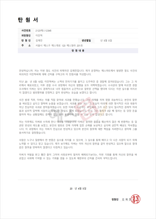 ▼▼ 더 많은 탄원서 예시 보러 가기 ▼▼