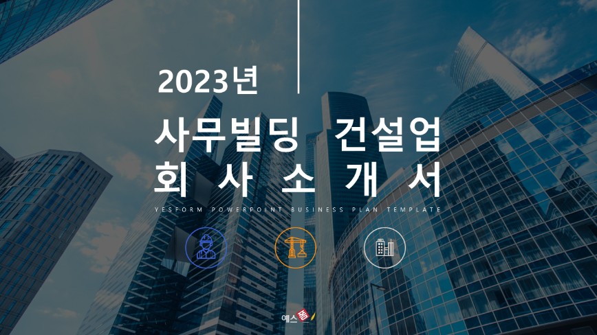 예스폼의 [2023년] 사무빌딩 건설업 회사소개서는 오피스텔, 상업시설, 지식산업센터, 업무시설 등 [2023년] 사무빌딩 건설업 회사소개서 템플릿 양식입니다. 사무, 상업용 건물 건설업 관련 이미지와 관련 도표 등이 포함되어 있는 템플릿인데요. 다양한 다이어그램을 통해 도표를 변경할 수 있으며, 회사 이미지와 맞는 컬러로 ppt 컬러를 바꿔보실 수 있습니다.