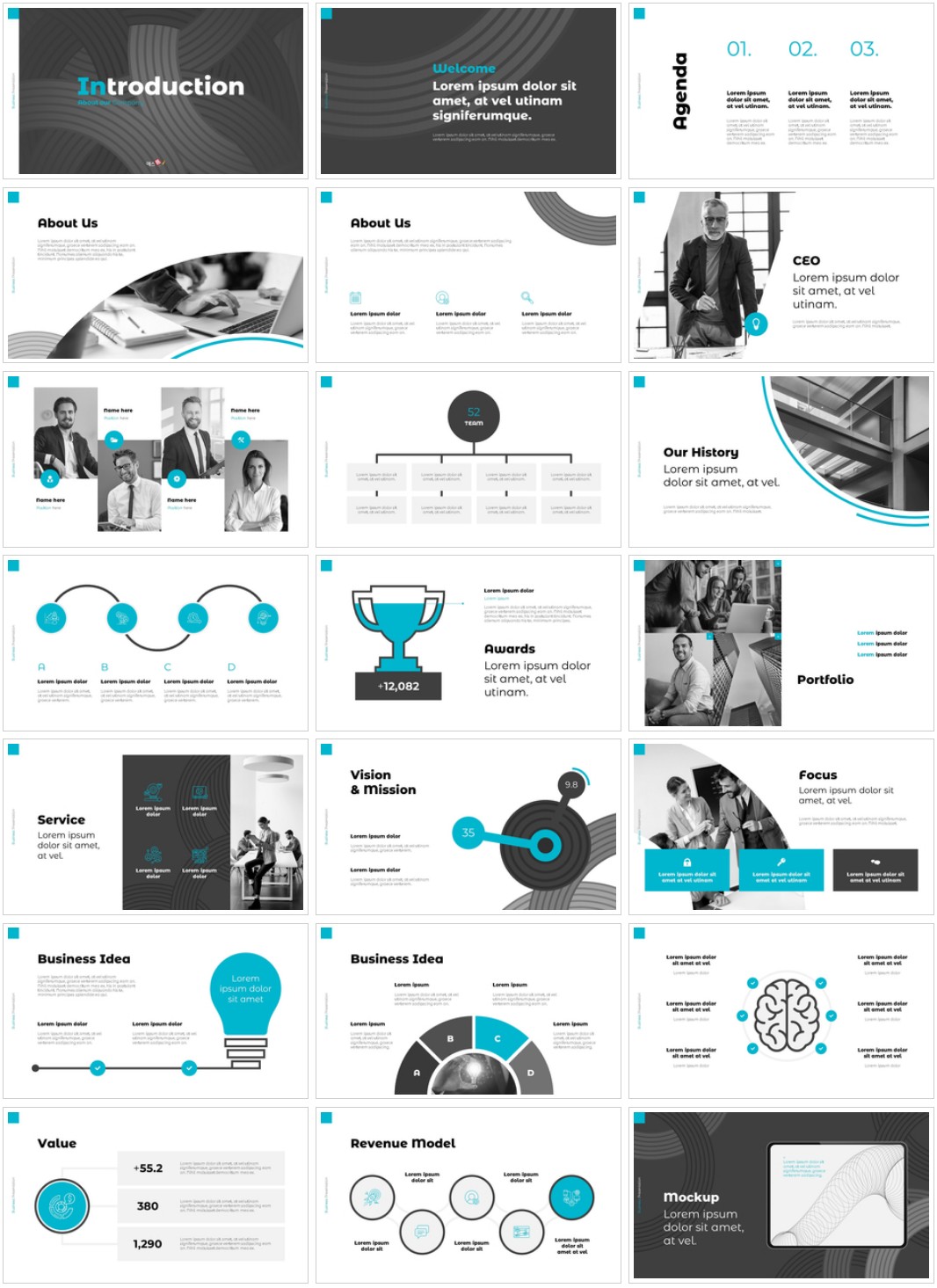 예스폼의 회사소개 심플 템플릿 16:9 ppt는 심플한 디자인으로 제작한 회사 소개서 템플릿으로 36 Slides로 구성되었습니다. 모든 도형의 컬러와 크기를 자유롭게 수정하는 것이 가능한데요. 다양한 도형으로 이루어져 있기 때문에 가독성이 떨어지지 않으며, 다양한 수치, 결과를 도형을 활용하여 정리해 볼 수 있습니다.