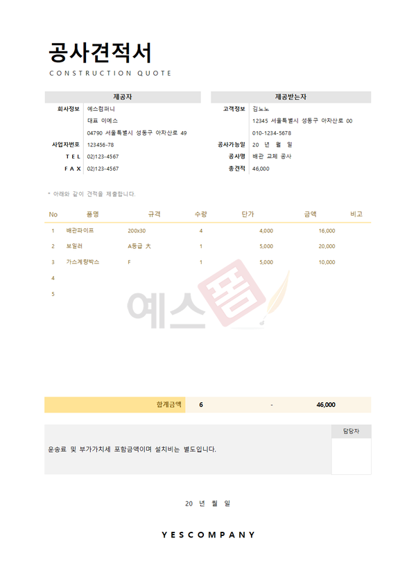 오늘은 예스폼에서 표준건축공사견적서 작성요령 및 양식에 대해서 알아보도록 하겠습니다.