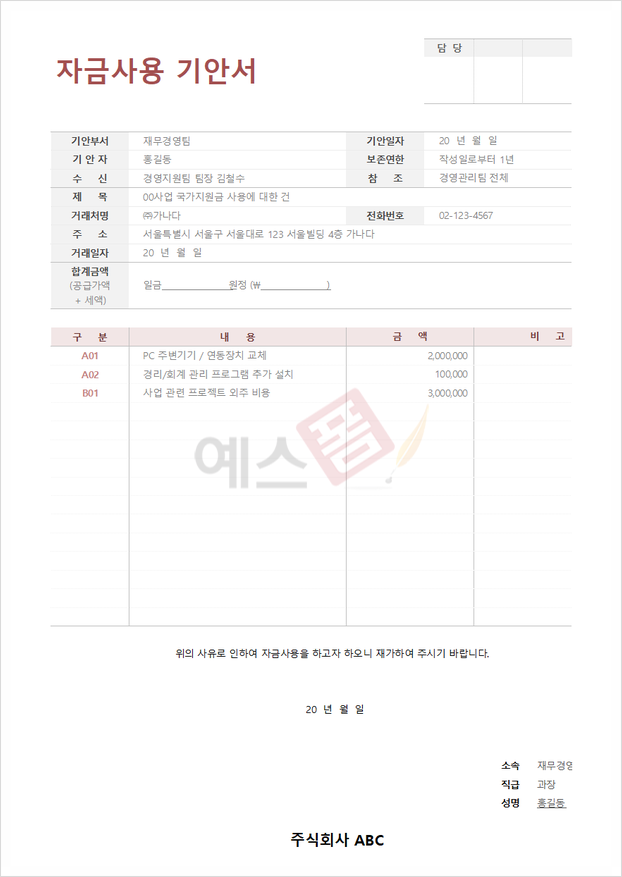 ✅ 예스폼 자금 사용 기안서