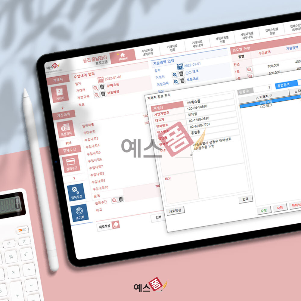 📋 예스폼 금전 출납관리 Program(수입/지출)