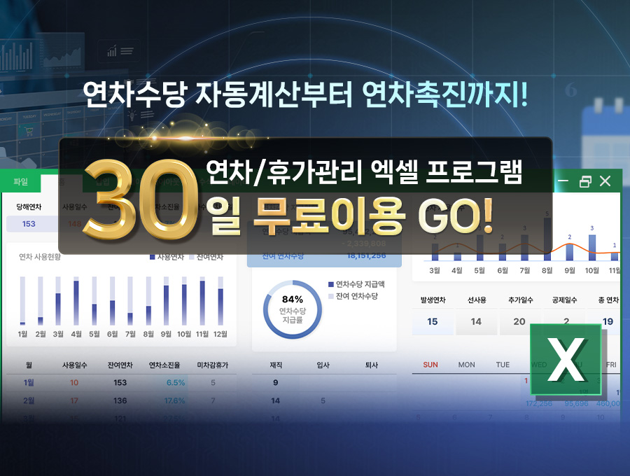 | 연차관리 엑셀 프로그램을 0원에 체험하는 법은? 2025 최신 연차관리 엑셀 프로그램 추천! (0) | 2025.09.22 |