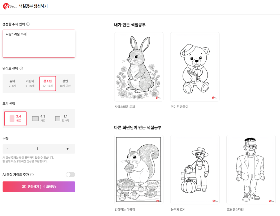 이처럼 AI 색칠공부는 기존의 무료 프린트 학습지나 색칠도안 서비스와는 다른 한 차원 높은 활용성을 제공합니다.