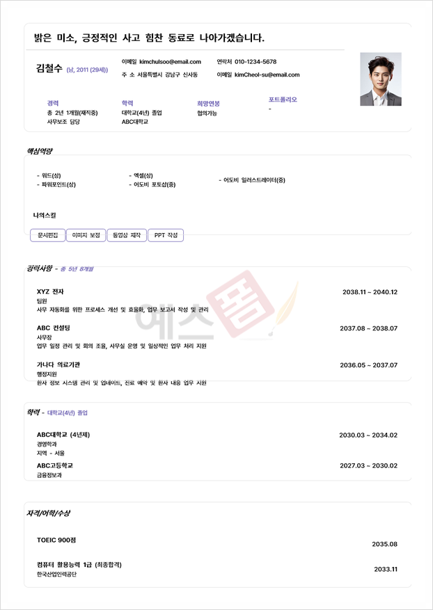 예스폼에서는 이 밖에도 다양한 이력서 양식과 직무, 직종 별 자기소개서 샘플, 자기소개서 예시가 있으니 참고해 보시기 자랍니다.