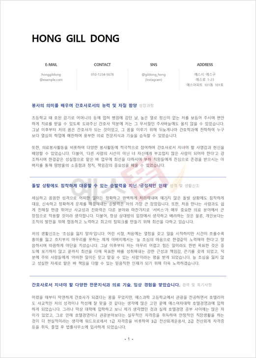 의료직 자기소개서 (간호사) |