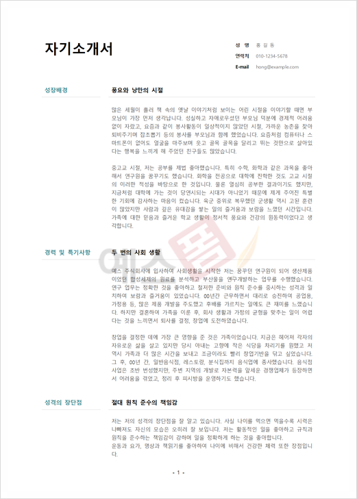 ▼▼ 더 많은 자기소개서 양식 샘플 예시 보러 가기 ▼▼
