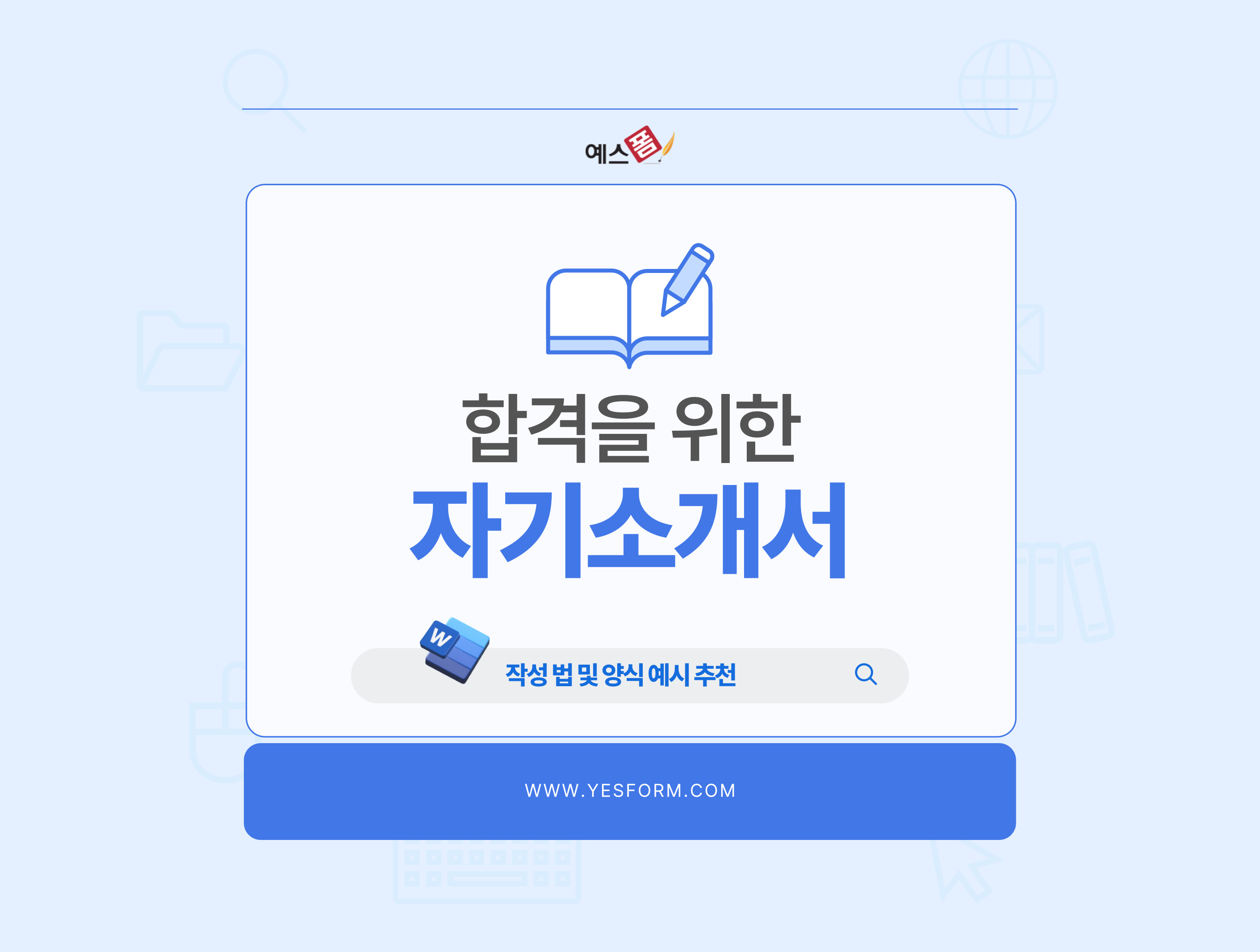 자기소개서를 처음 작성하거나 수정하려고 하다 보면 어디서부터 시작해야 할지 막막할 수 있는데요. 자기소개서를 잘 쓰기 위해서는 단순한 사실 나열보다는 본인의 강점과 경험을 구체적으로 표현하는 것이 중요합니다. 오늘은 예스폼에서 업데이트된 자기소개서 예시 자기소개서 양식 소개와 자기소개서 작성 시 많이들 고민하시는 자기소개서 성장과정, 자기소개서 지원 동기, 자기소개서 경험 항목에 대해 작성 팁을 준비했습니다. 예스폼에서는 다양한 자소서 예시 이력서 자기소개서 양식 자기소개서 예시 등을 제공하고 있으니 자기소개 작성 시작이 어려우시다면 다양한 자기소개서 예시를 참고해 보시기 바랍니다.