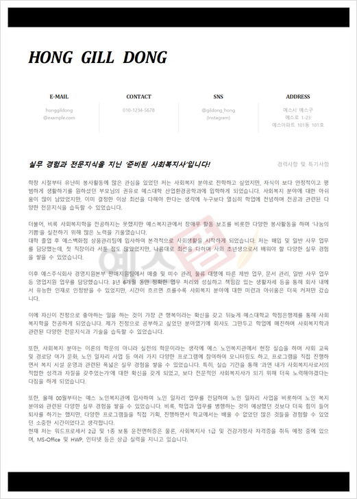 사회복지직 자기소개서 (사회복지사) |