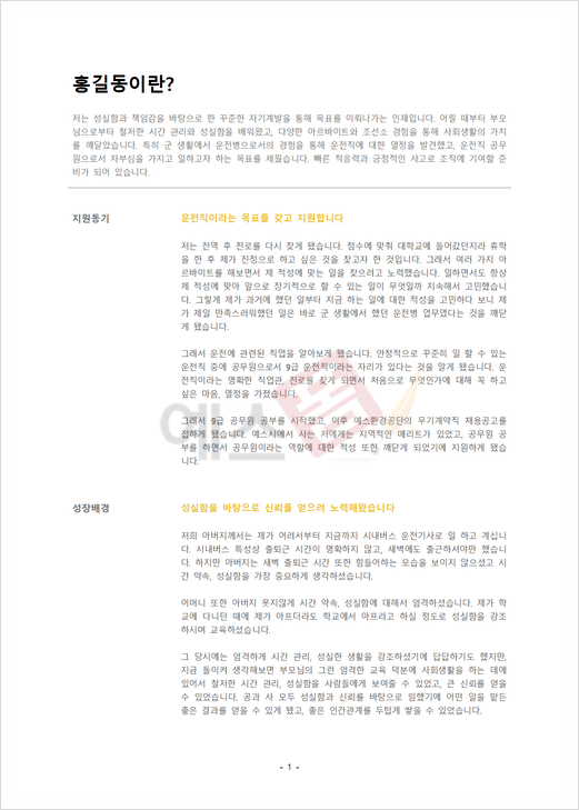 | 공무원 자기소개서 (운전직) |