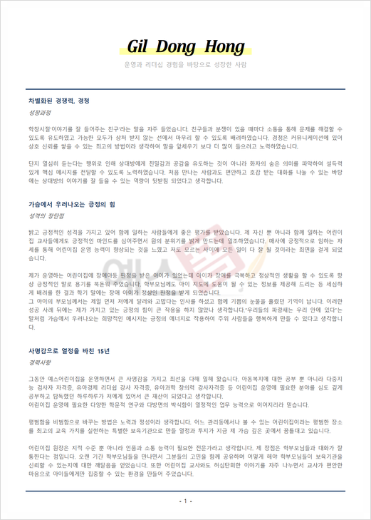 교육직 자기소개서 (어린이집 운영) |