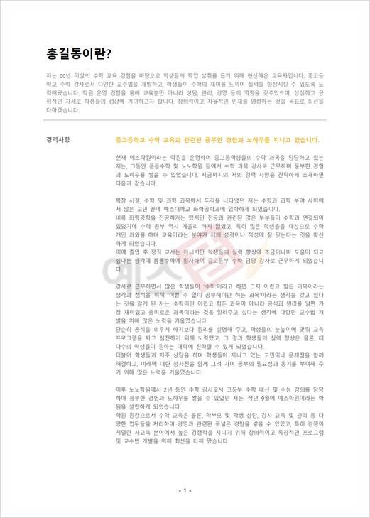 | 교육직 자기소개서 (방과후교사) |