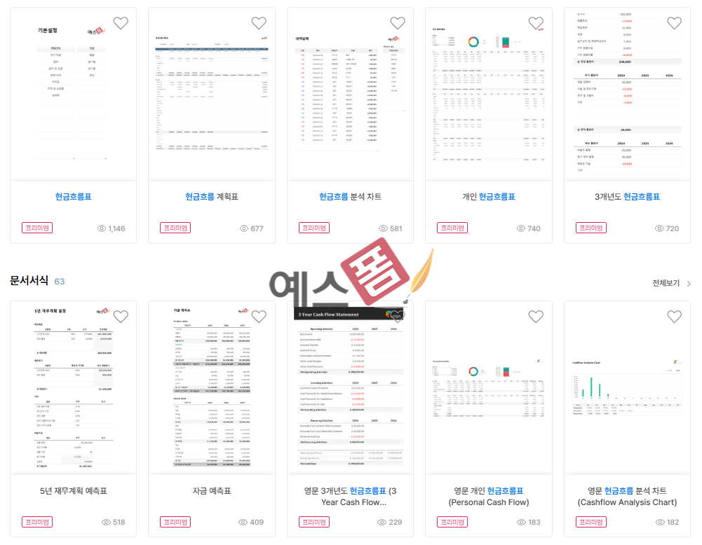 이제 이론을 이해했다면, 실제로 문서를 작성해볼 차례입니다. 예스폼에서는 다양한 형태의 현금흐름표 양식을 엑셀, 한글, PDF 포맷으로 제공합니다. 실무 환경에 따라 쉽게 수정 가능하며, 자동 계산 기능이 포함된 엑셀 양식도 지원됩니다.