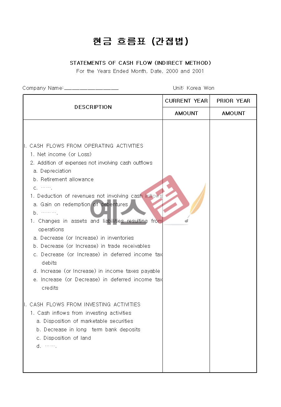 상반기 자금흐름표 현금흐름표 영문 현금흐름표 간접법