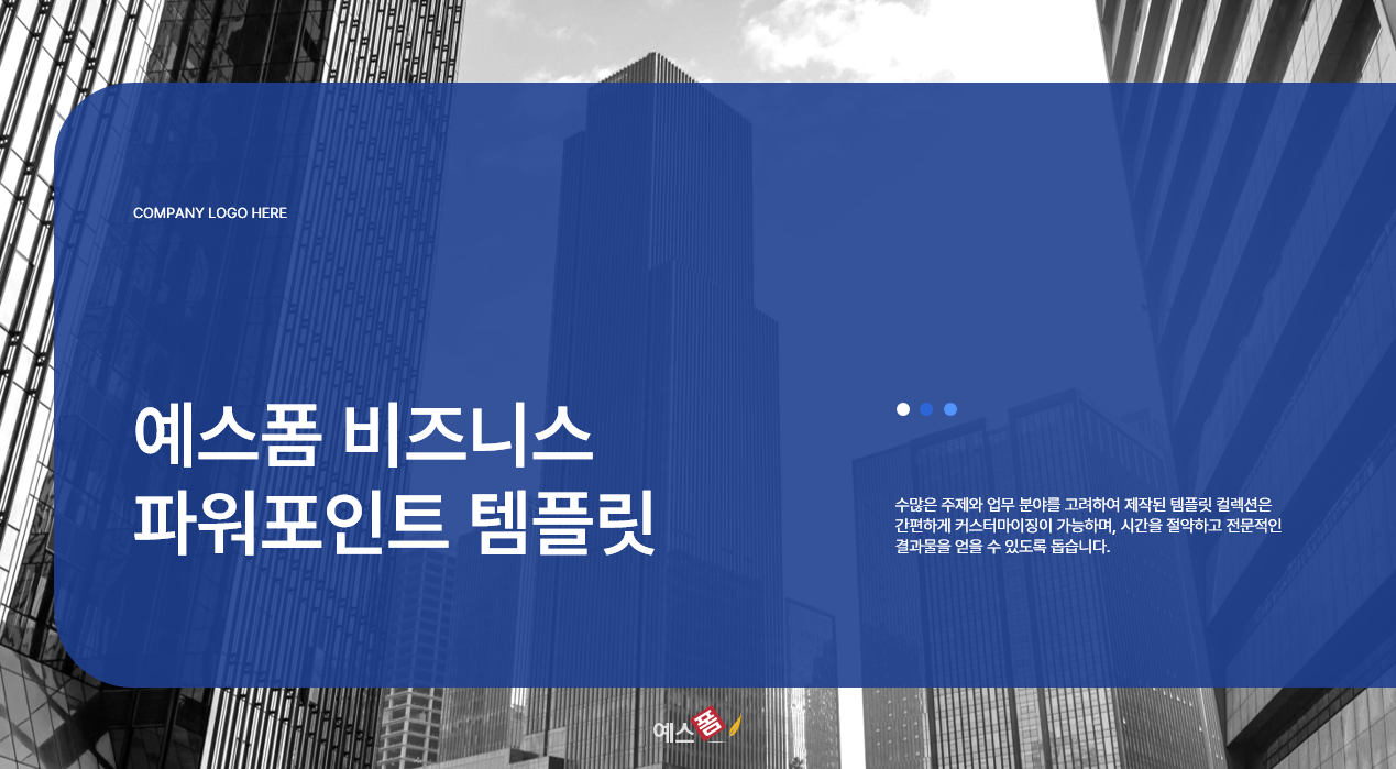 오늘은 회사소개서 PPT, 제안서PPT, IR자료 PPT 등 다양한 실무 문서를 한 번에 해결할 수 있는 예스폼의 올인원 PPT템플릿을 소개해드렸습니다. 문서가 많은 만큼 시간이 중요한 직장인들에게, 효율적이고 설득력 있는 슬라이드 구성은 경쟁력이 됩니다. 예스폼은 실전에서 검증된 다양한 PPT템플릿을 통해 사용자 여러분의 작업 시간을 줄이고 결과물의 완성도를 높이는 데 기여하고 있습니다. 지금 바로 예스폼에 방문하셔서, 나에게 꼭 맞는 PPT템플릿을 만나보세요!