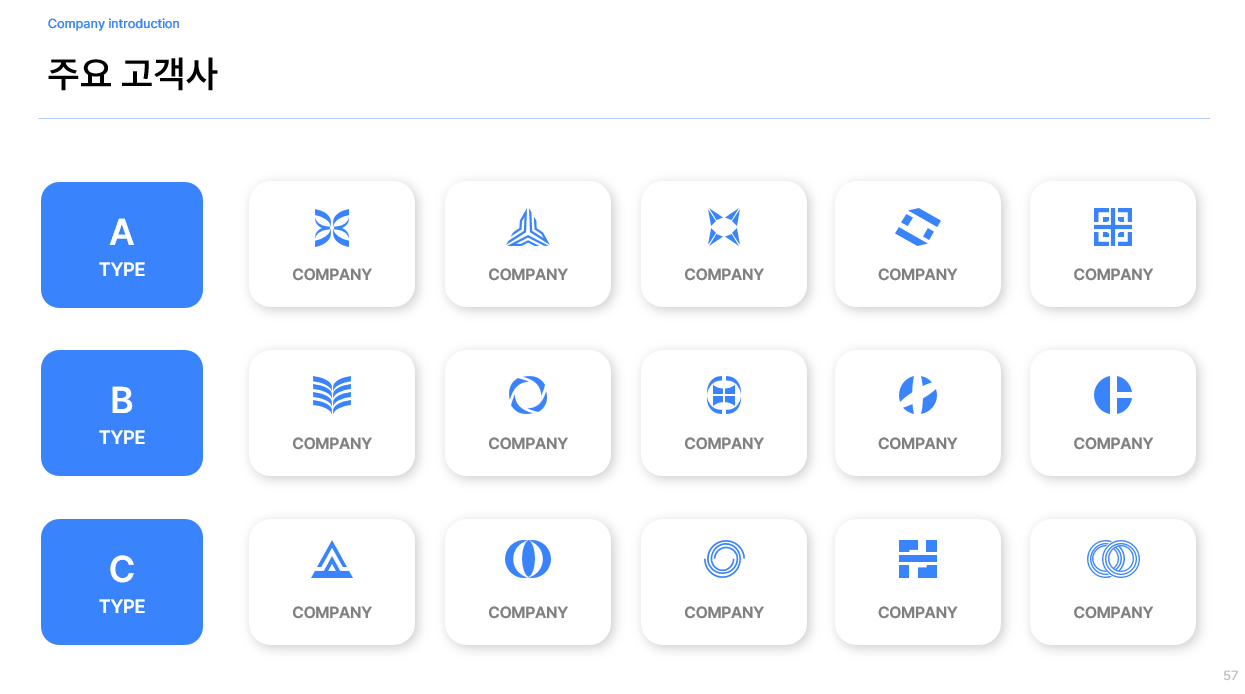 IR 자료, 제안서, 입찰 설명 자료로도 확장 활용이 가능해 하나의 소개서로 다양한 목적을 충족할 수 있습니다.