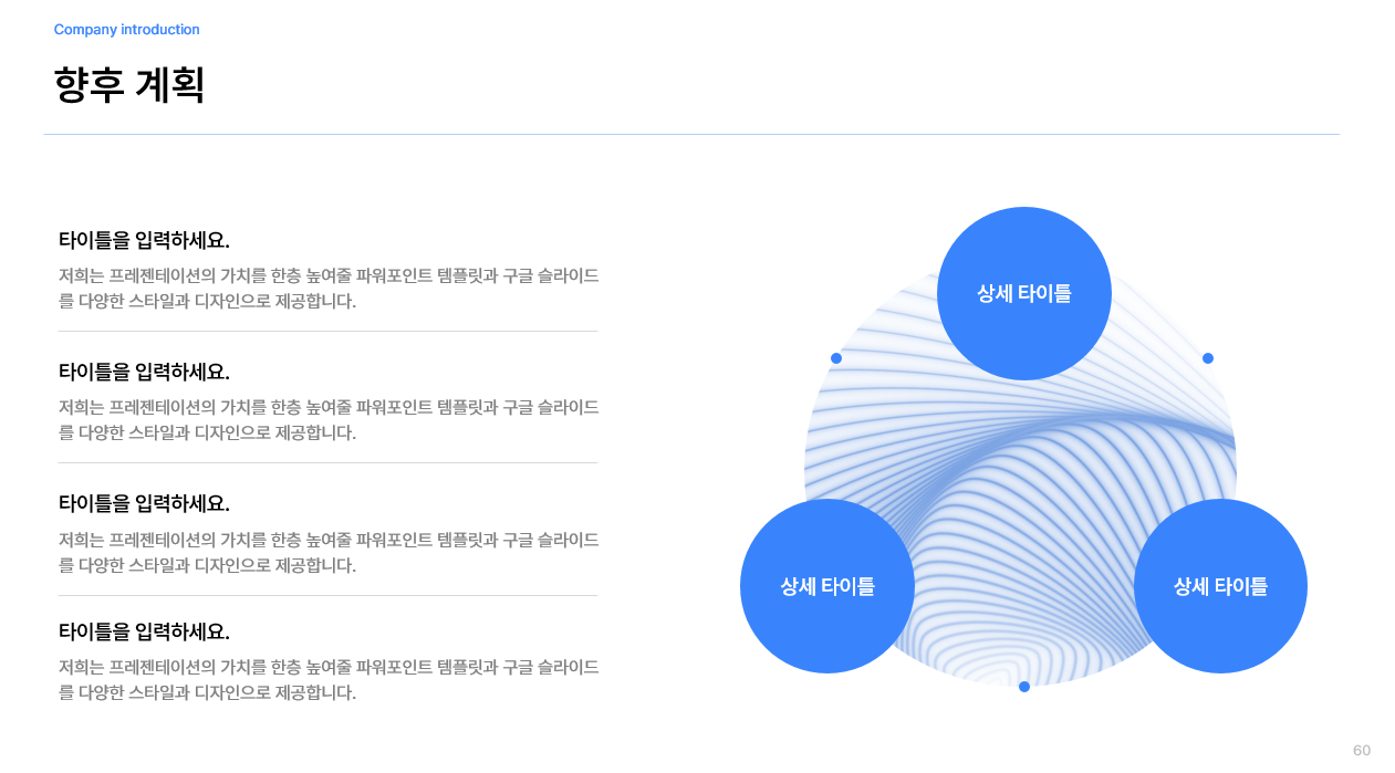 - 전 산업군 활용 가능: IT, 제조, 유통, 교육 등 다양한 업종에서 범용적으로 쓸 수 있는 슬라이드 구성