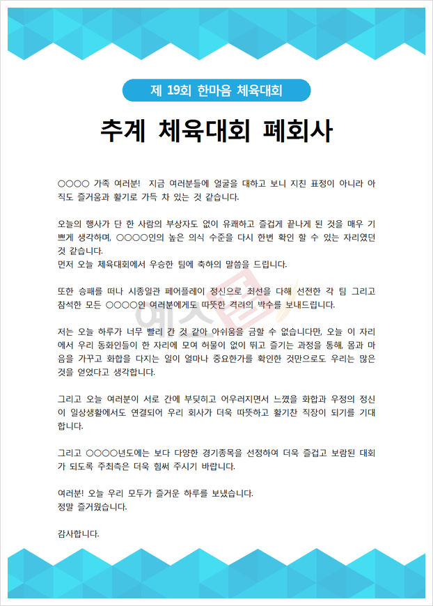 축사_사장_행사대회_(축사) 체육대회를 맞아 회사 대표가 전하는 축하 인사말(단결, 단합) 무료 3,987