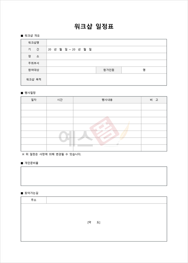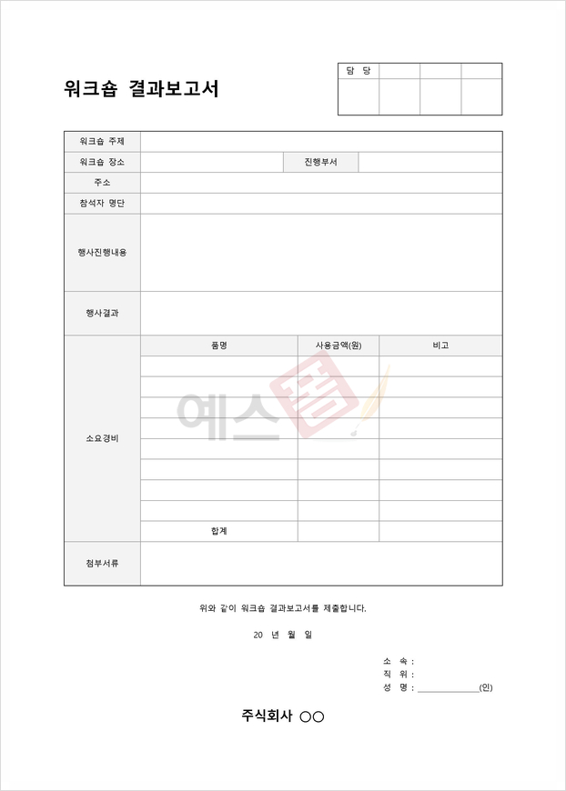 | 체육대회 폐회사 | 워크숍 경품 응모권 | 워크숍 결과보고서 (소요경비) |
