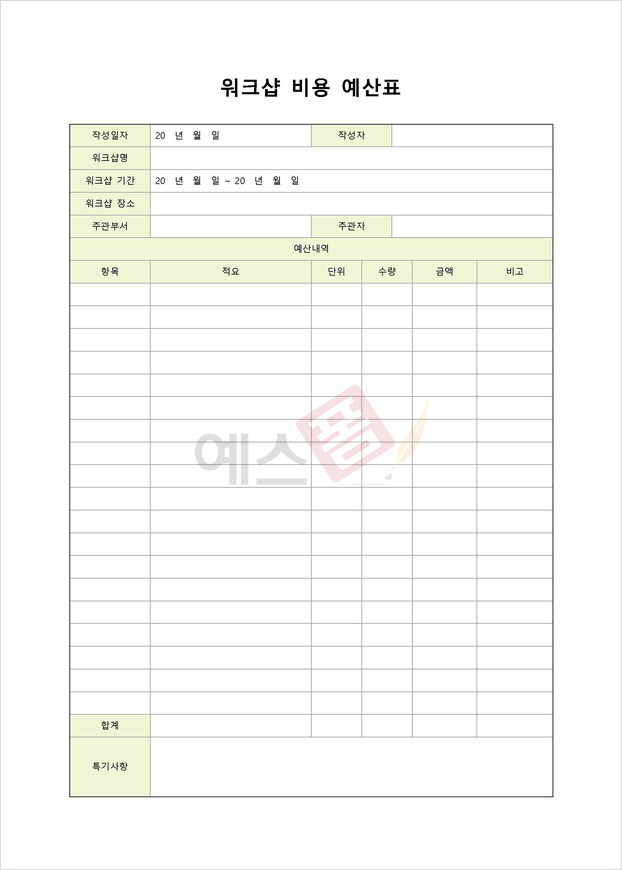 | 워크샵 기획안 | 워크숍 예산안 | 워크샵 비용 예산표 |