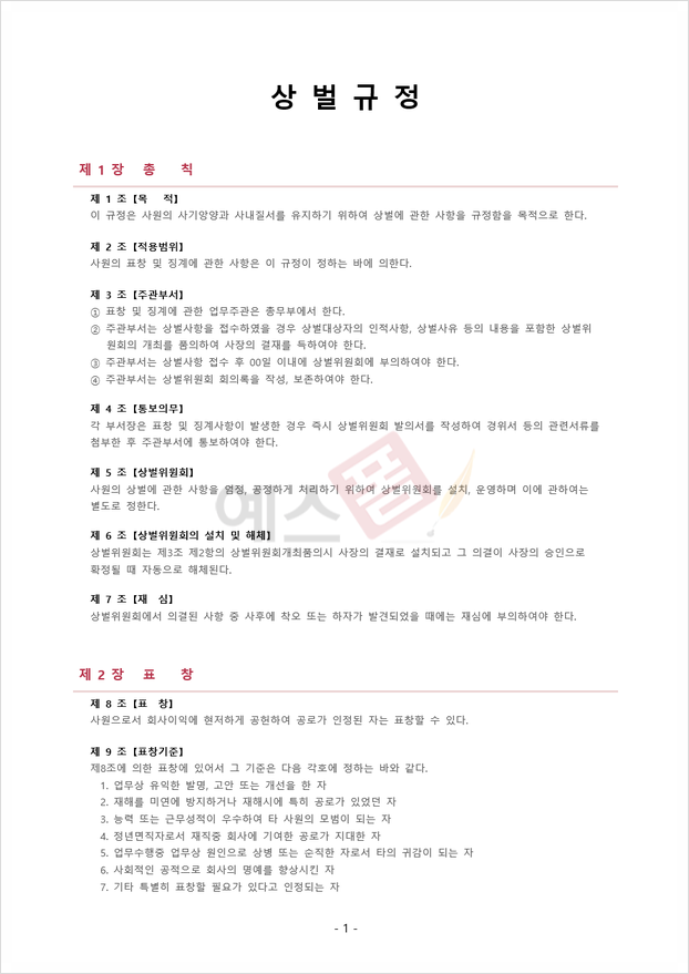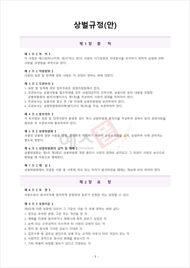 ▼▼ 예스폼 상벌규정 양식 보러 가기 ▼▼