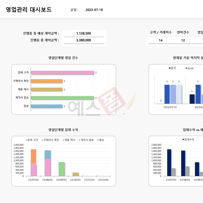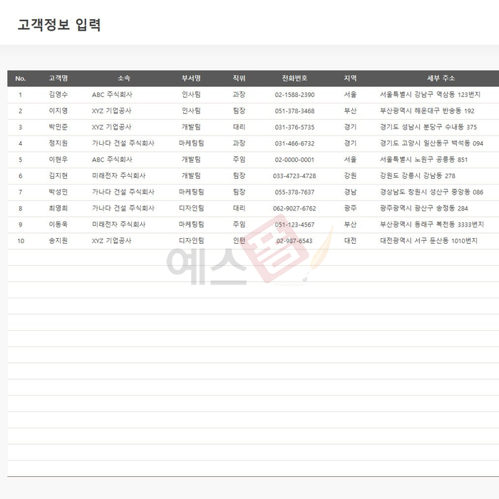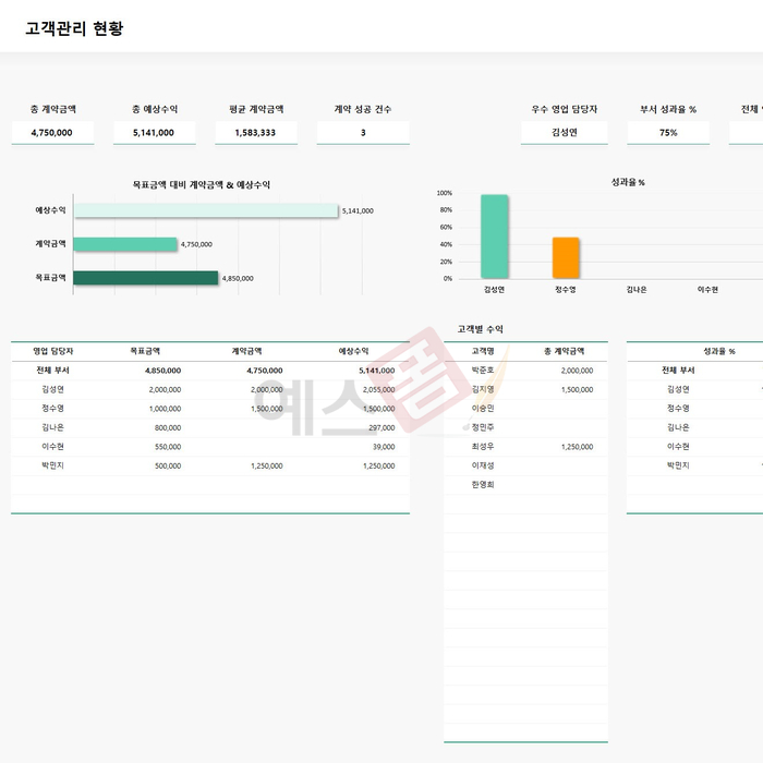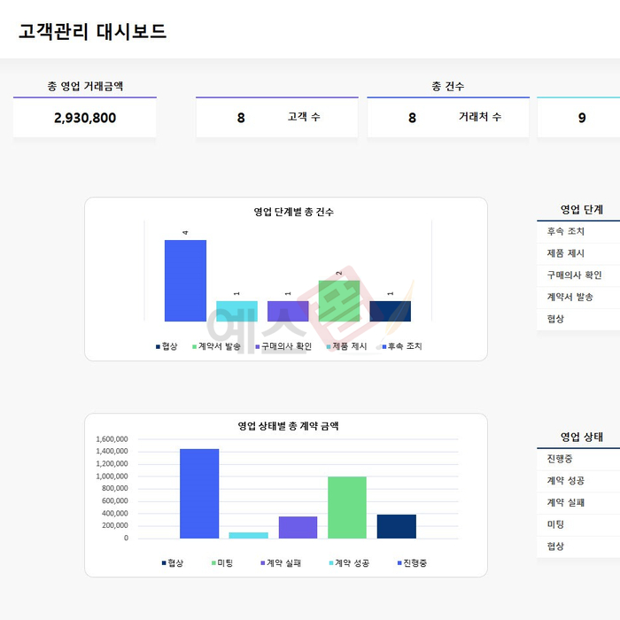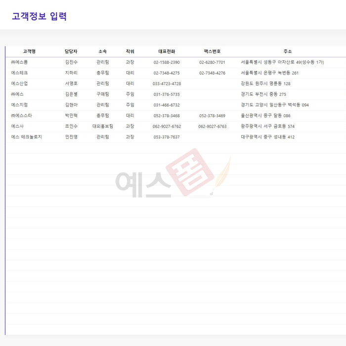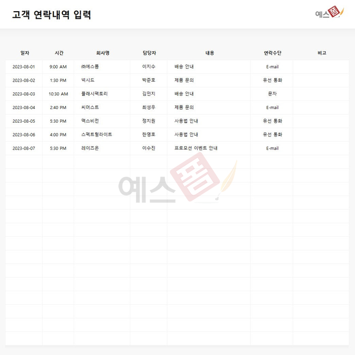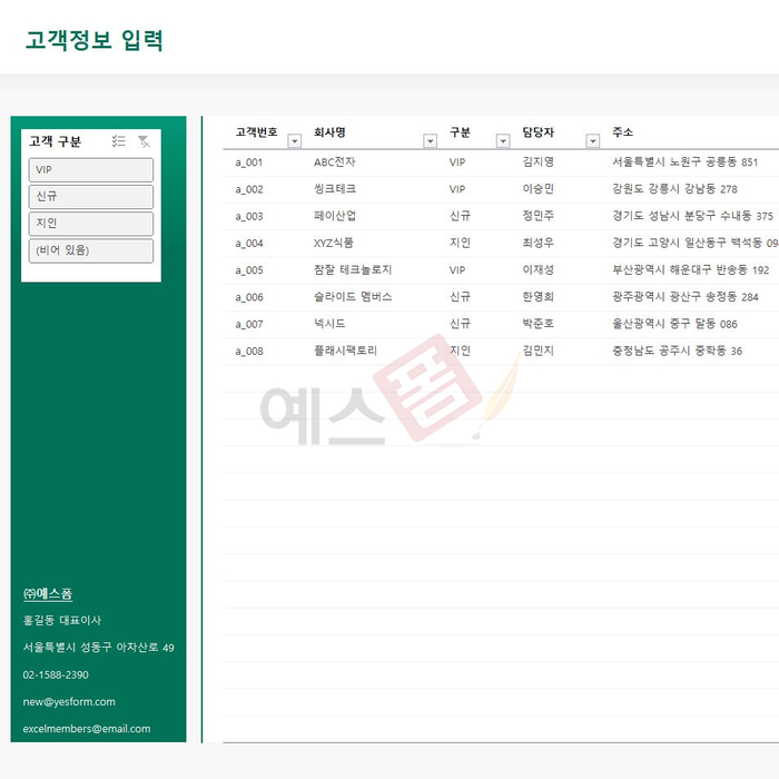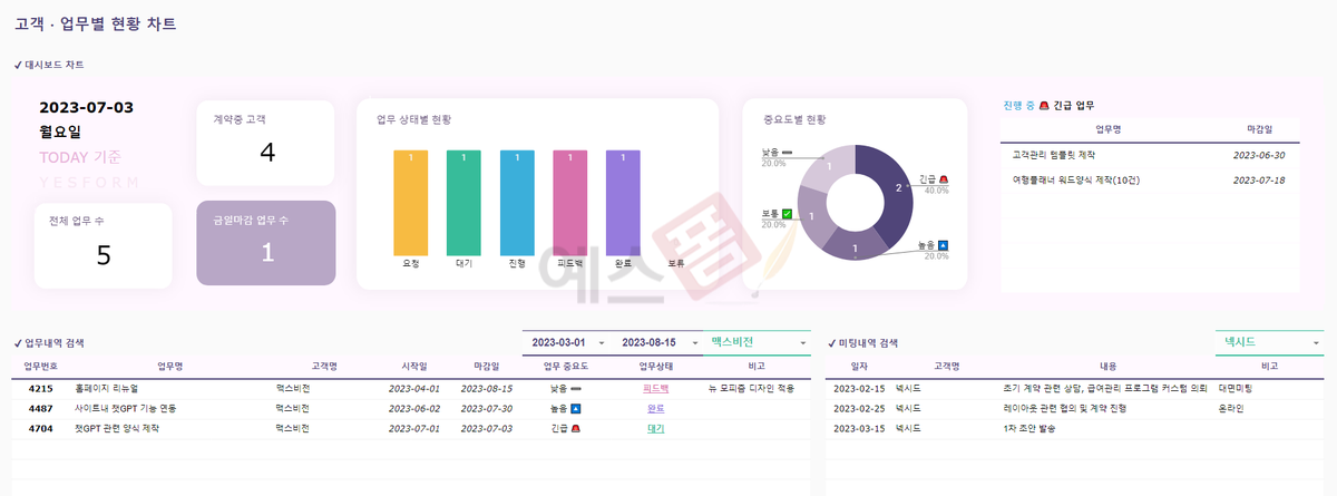 고객관리(업무관리) 템플릿 구글 스프레드시트 - 예스폼 엑셀서식