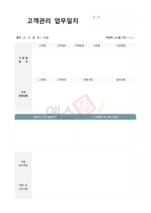| 매장 고객관리대장 | 고객관리 업무일지 | 고객관리카드 |