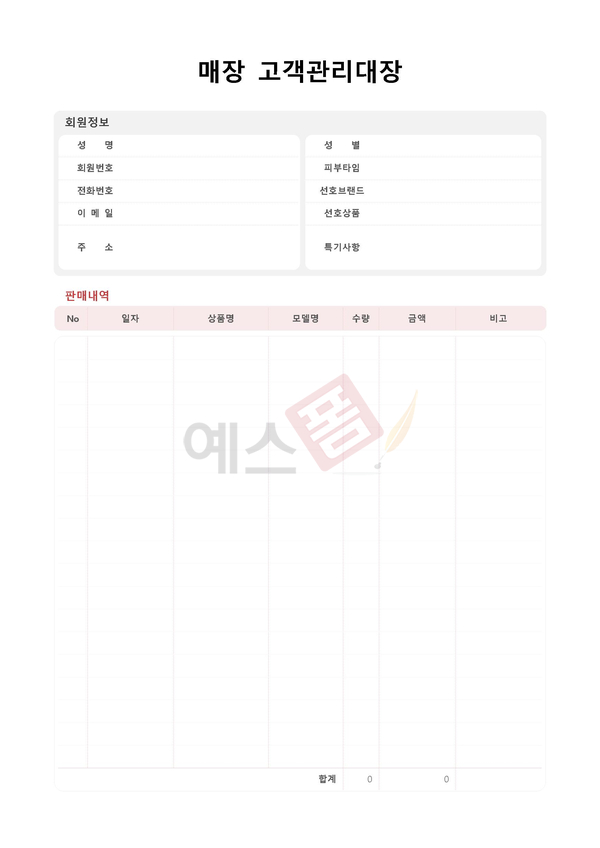 매장 고객관리대장 | 고객관리 업무일지 | 고객관리카드 |