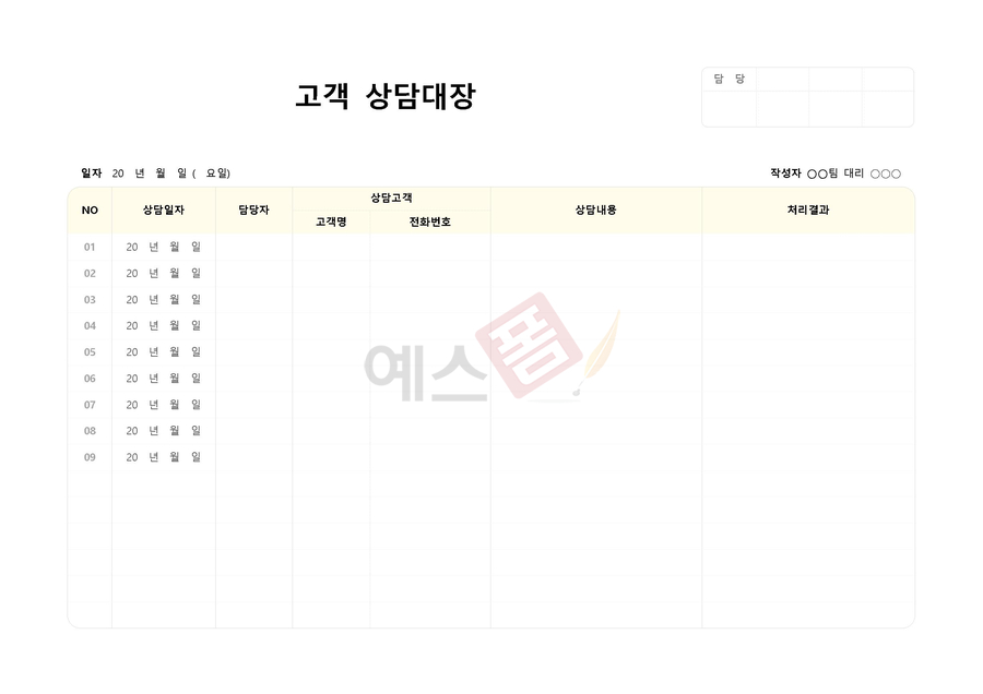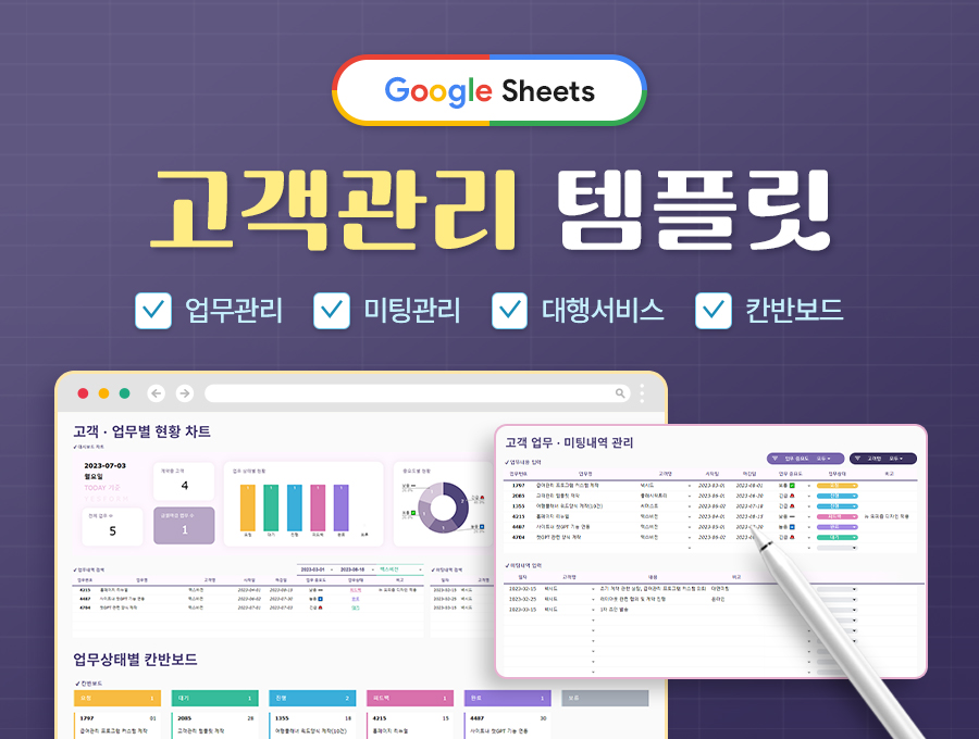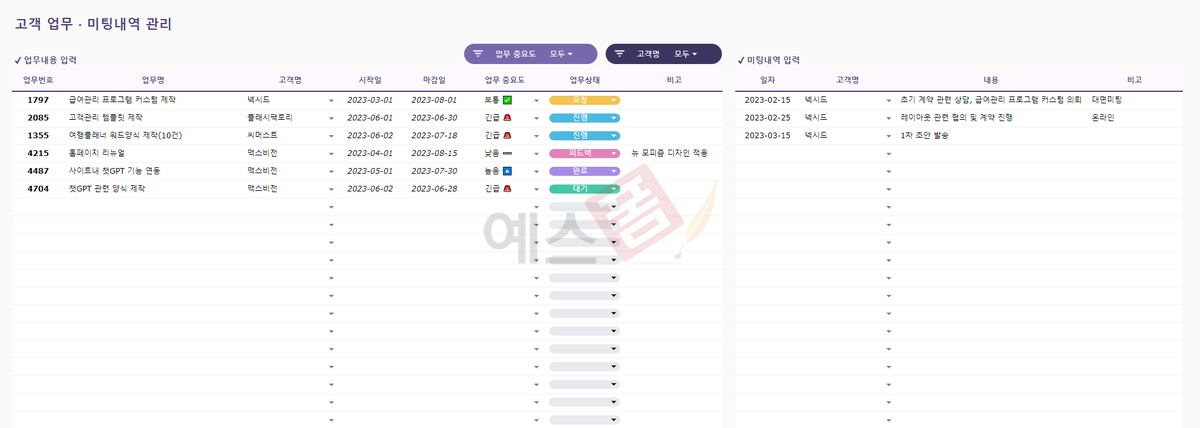 고객관리(업무관리) 템플릿 구글 스프레드시트 - 예스폼 엑셀서식