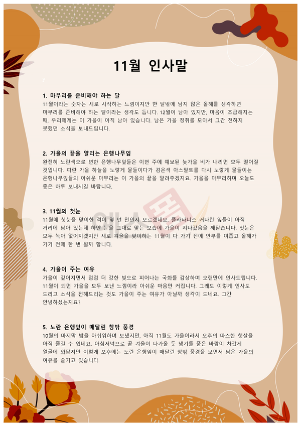 11월 인사말 양식 서식.샘플 문서자료