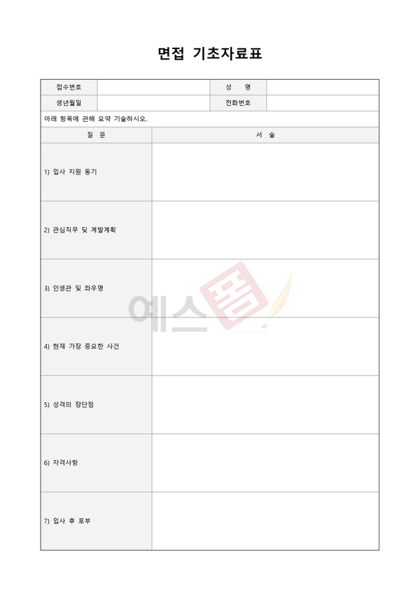 면접 준비를 위한 양식
