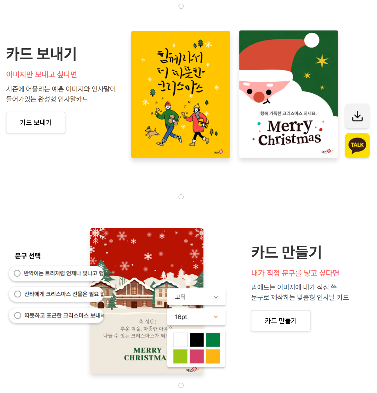 맘에 드는 이미지에 내가 직접 쓴 문구로 크리스마스 카드를 만들 수 있어요.