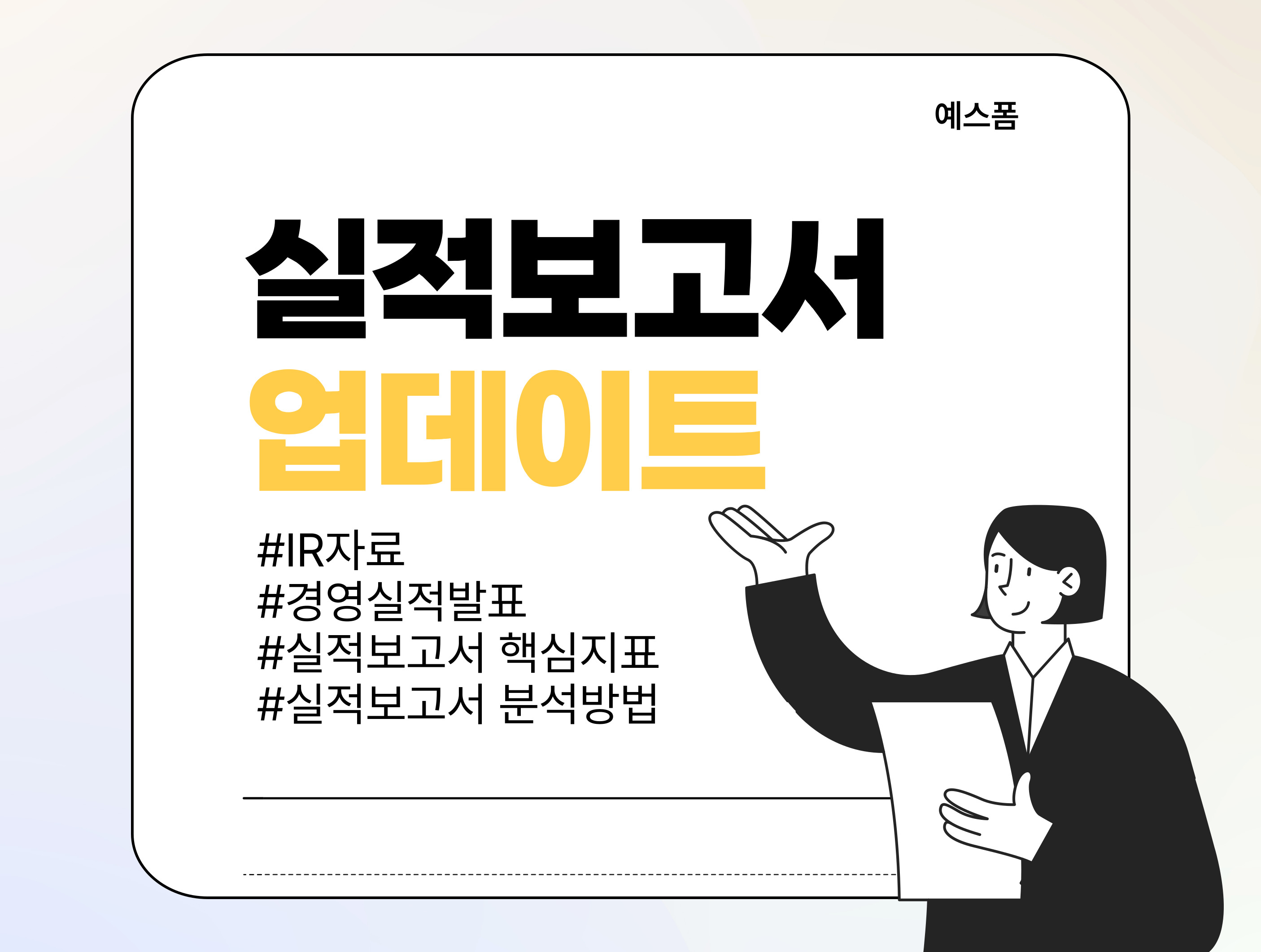 오늘의 포스팅에서는 실적보고서의 기본 개념을 이해하고 실적보고서에서 반드시 확인해야 할 핵심 지표들, 분석방법 그리고 예스폼에서 제공 중인 다양한 실적보고서 양식, 기업 실적보고서에 대해 소개해드리겠습니다.