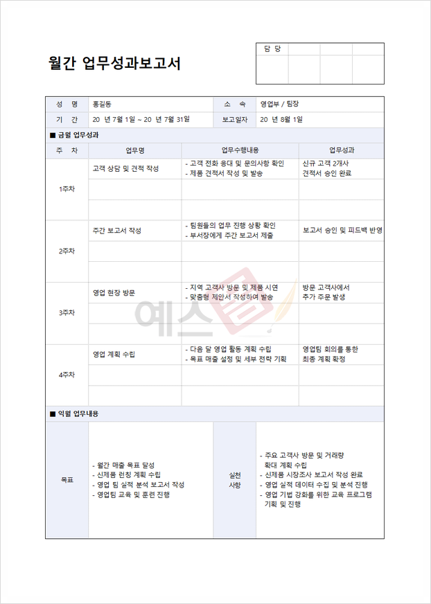 월간 업무성과보고서 (영업 계획) |