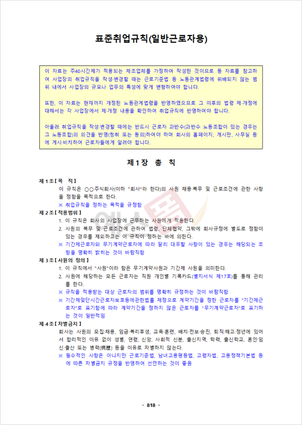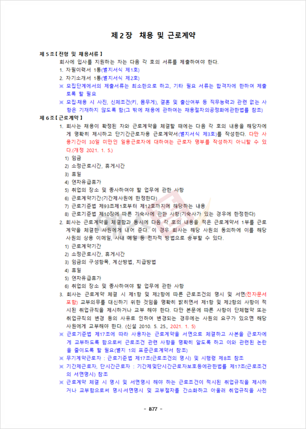 실제 개정된 각종 법 규정과는 다소 차이가 날 수 있어 법과 관련된 조항은 회사 실정에 맞게 수정 작성하시길 바랍니다.